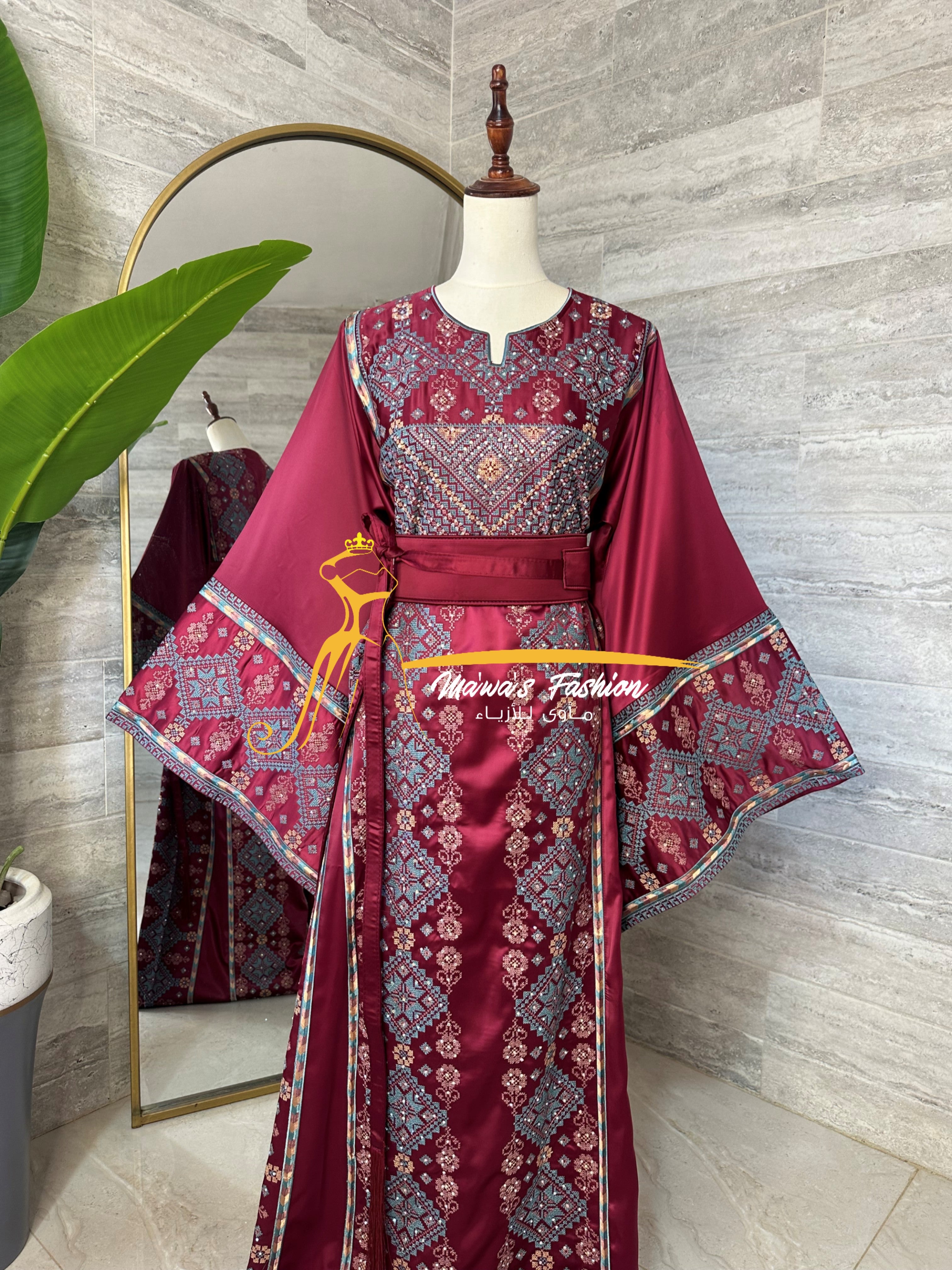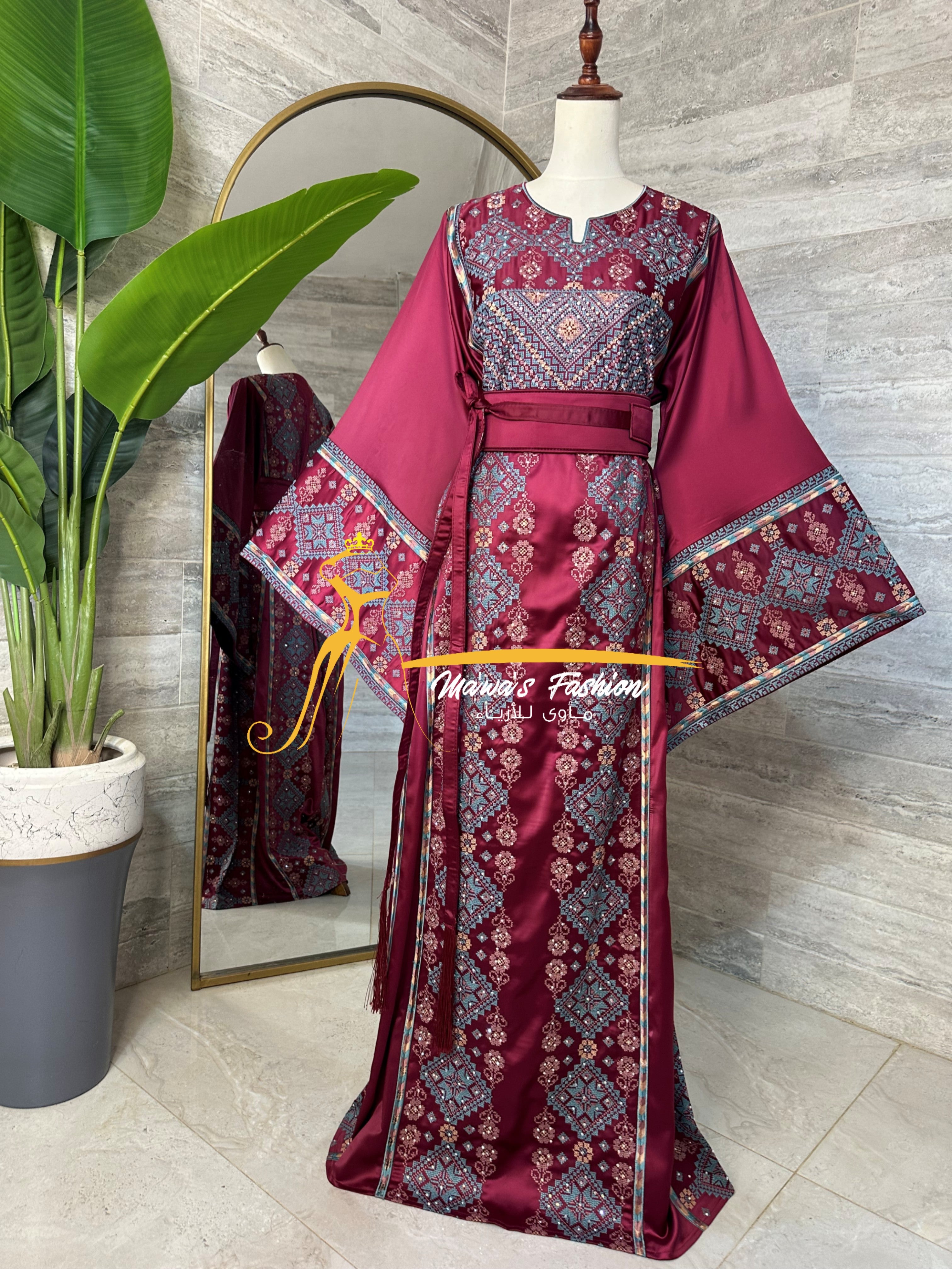 ثوب تراثي بلمسة عصرية بالوان راقية مع تطريز ثقيل من الأمام والخلف تزيد الثوب بهجة، بقماشة الستان ليضيف  على الثوب رقي.
