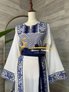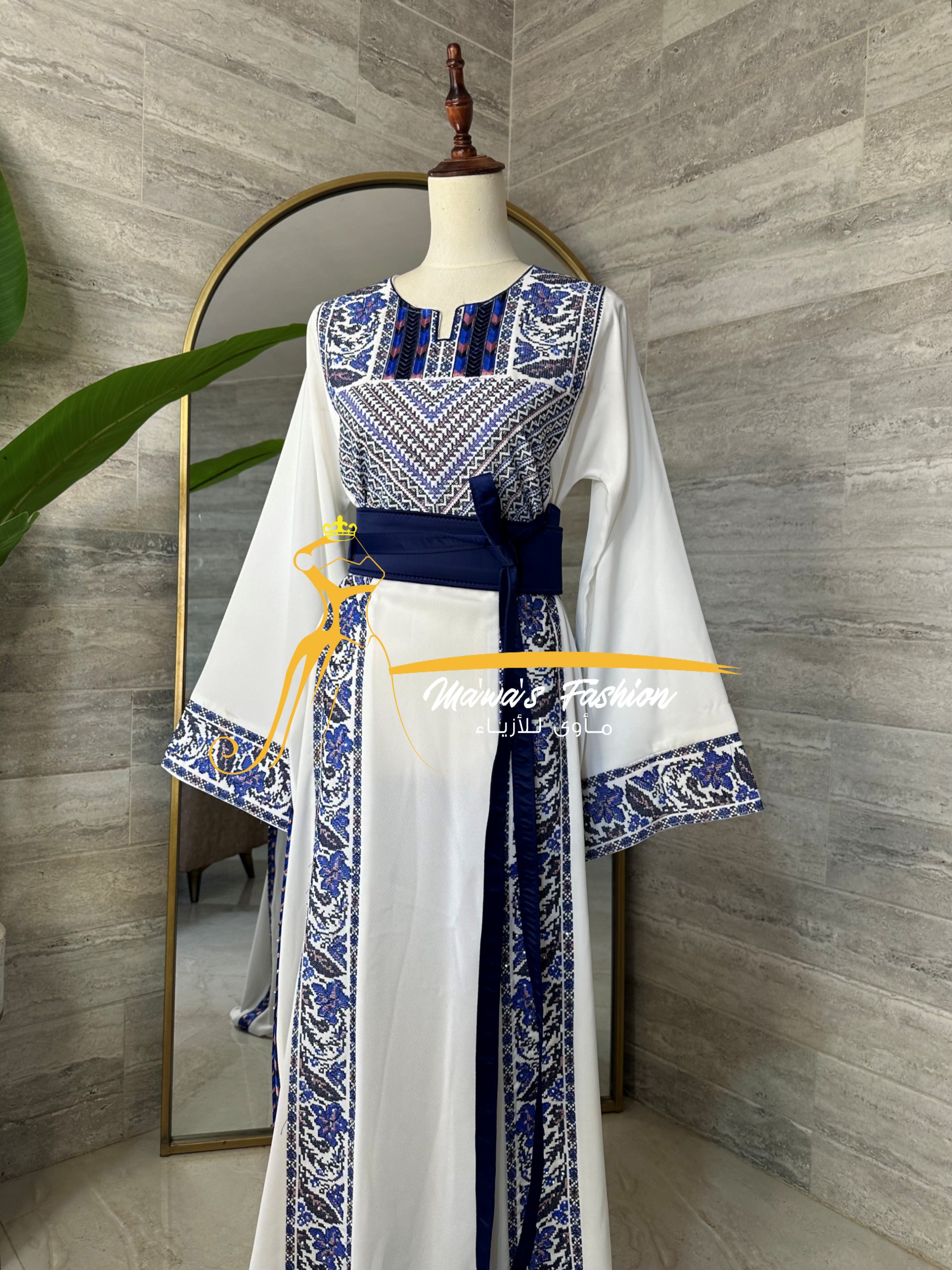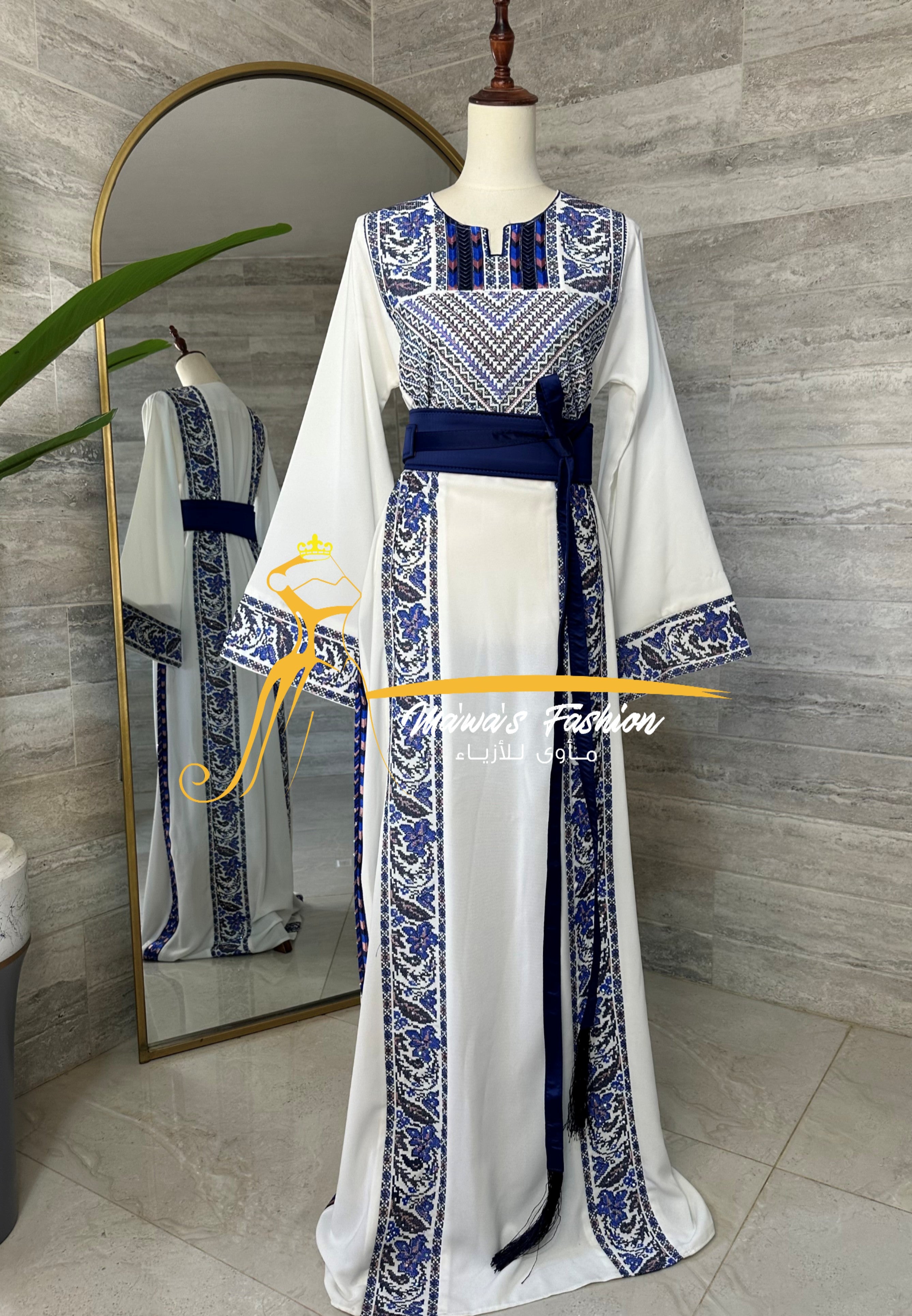 ثوب تراثي بلمسة عصرية باللون الابيض الراقي مع تطريز ثقيل من الأمام والخلف بألوان رقيقة تزيد الثوب بهجة، ليضيف على الثوب رقي.