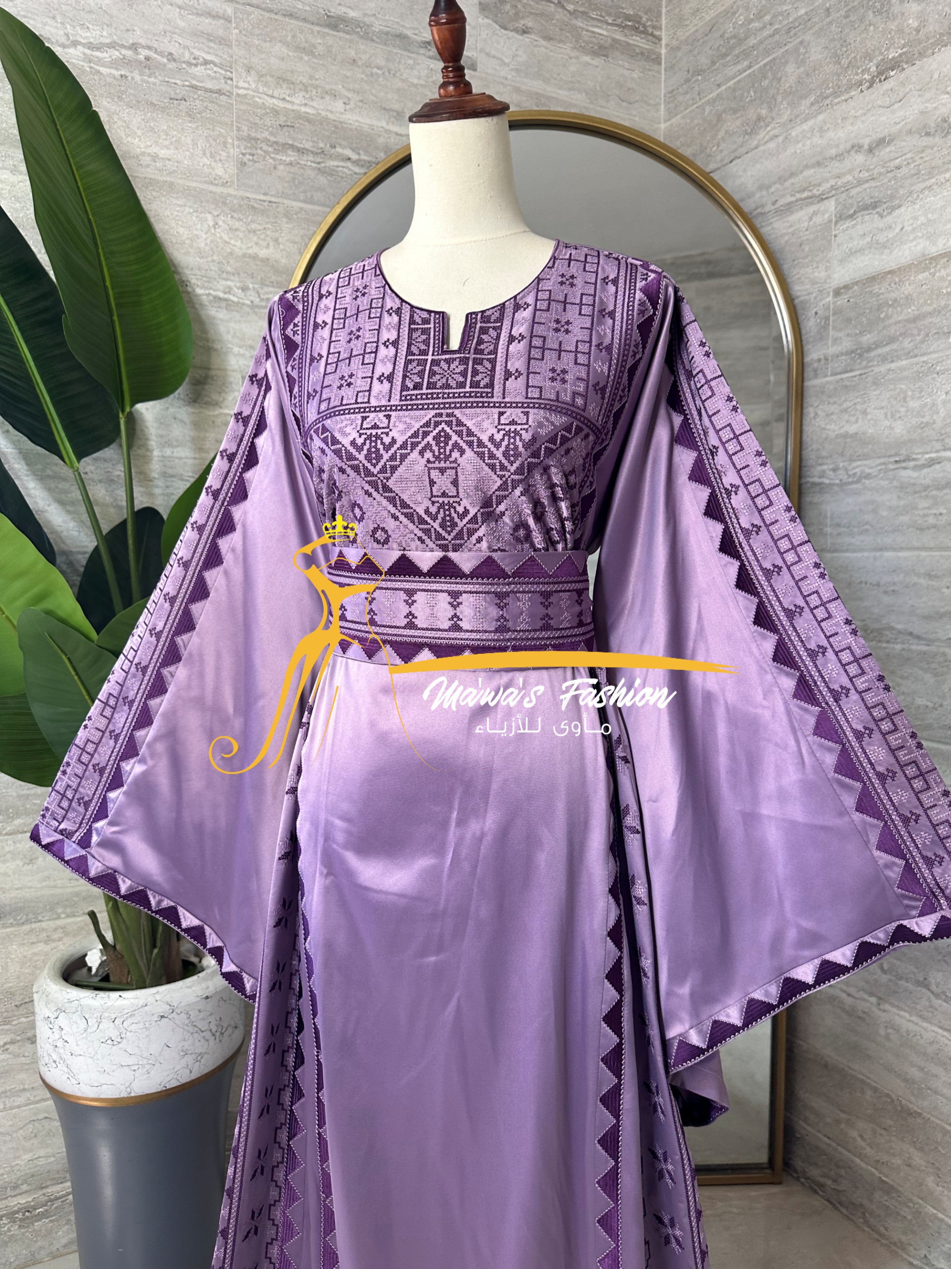 • حزام مطرز بالكامل بنفس ألوان الثوب.