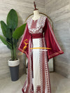 ثوب تراثي بلمسة عصرية باللون الابيض الراقي مع تطريز ثقيل من الأمام والخلف بألوان رقيقة تزيد الثوب بهجة، بالاضافة لقماشة الستان الكم تضفي على الثوب رقي.
