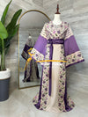 ثوب تراثي بلمسة عصرية باللون البيج الراقي مع تطريز ثقيل من الأمام والخلف بألوان رقيقة تزيد الثوب بهجة، بالاضافة لقماشة الستان ليضيف على الثوب رقي.