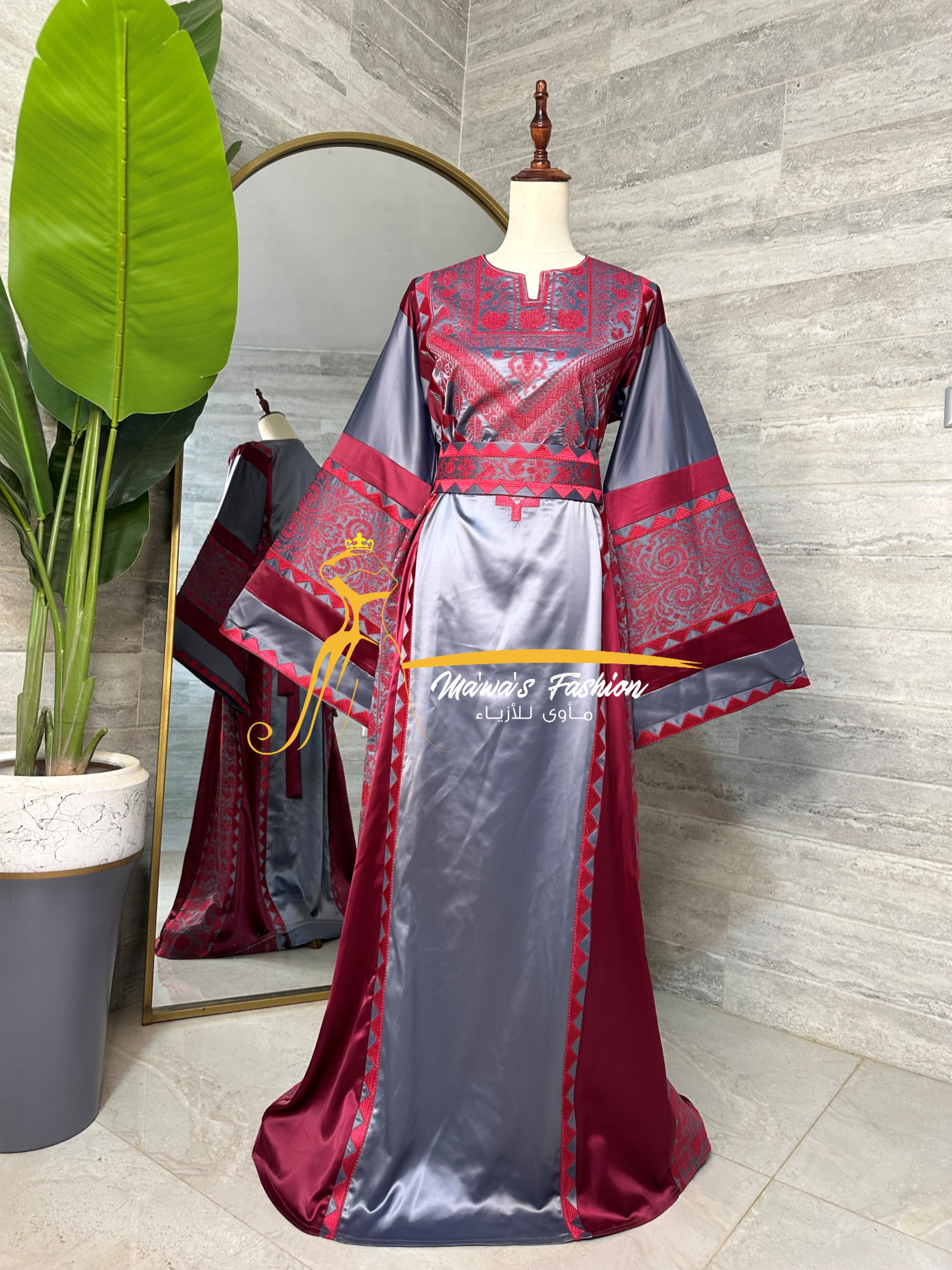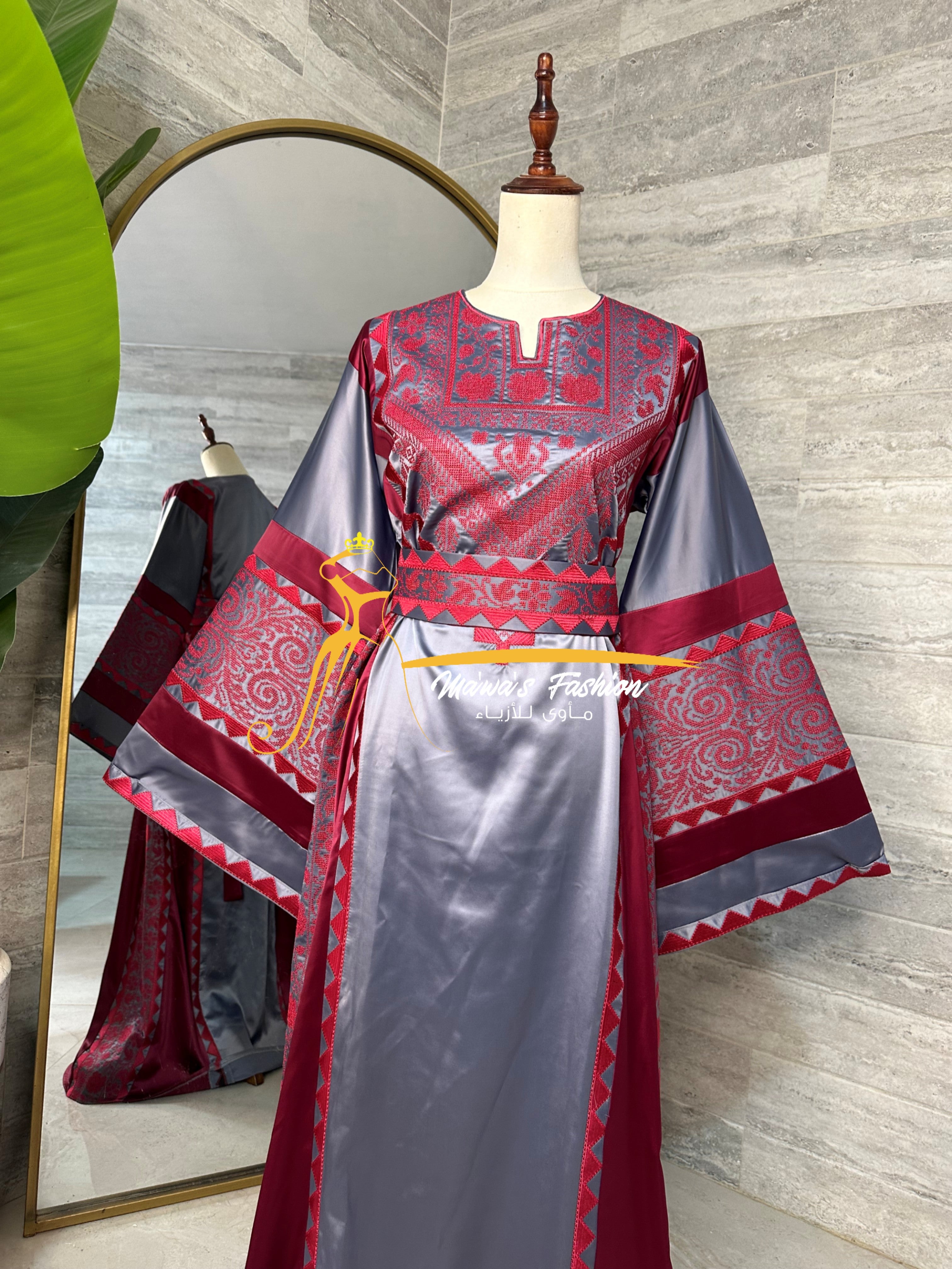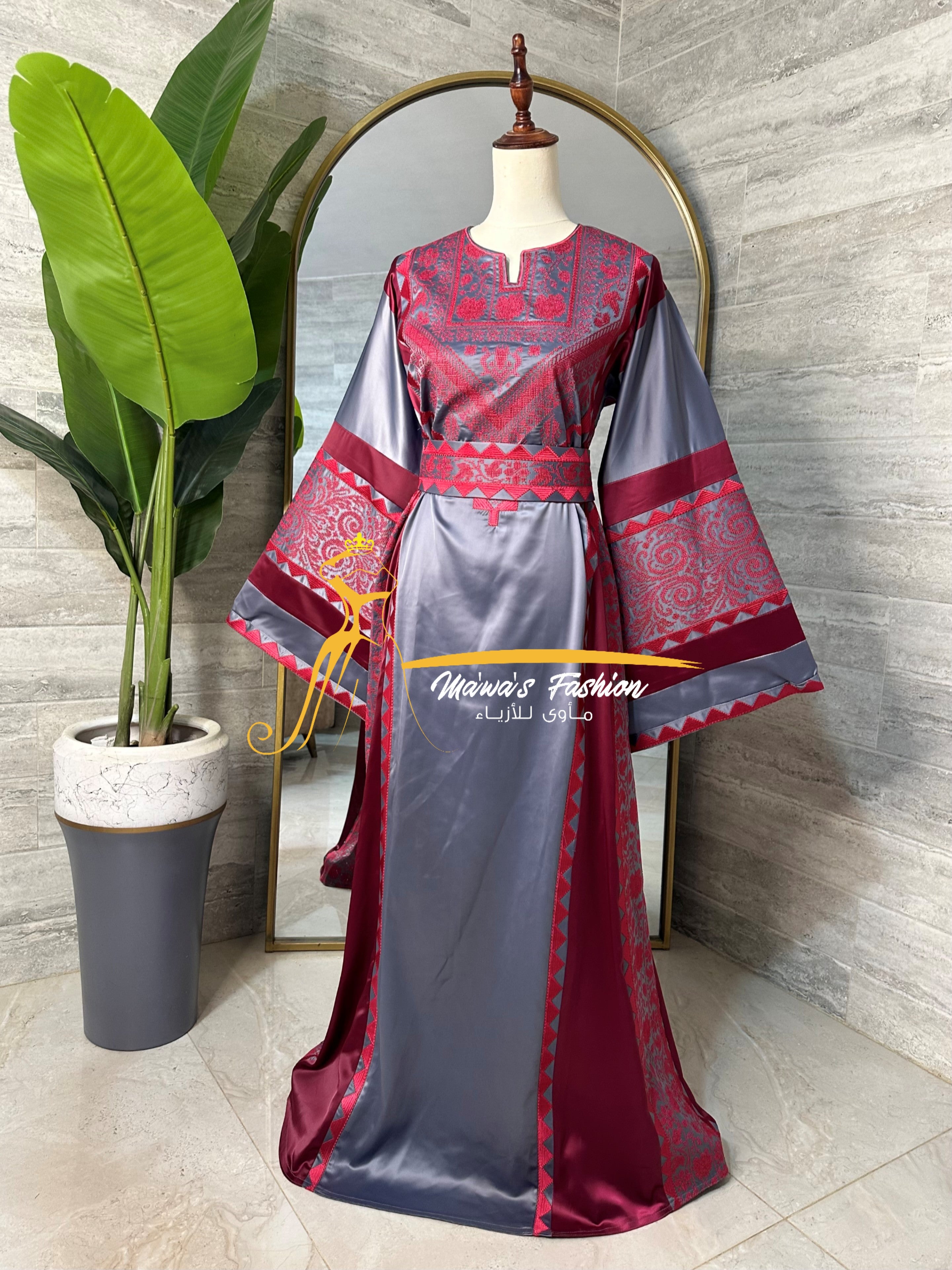 ثوب تراثي بلمسة عصرية بالوان راقيه مع تطريز بنقشات مميزة بألوان رقيقة تزيد الثوب بهجة،  بخامة قماش الستان  على الثوب رقي. •  أكمام طويلة مطرزة بالكامل . • تطريز كامل...